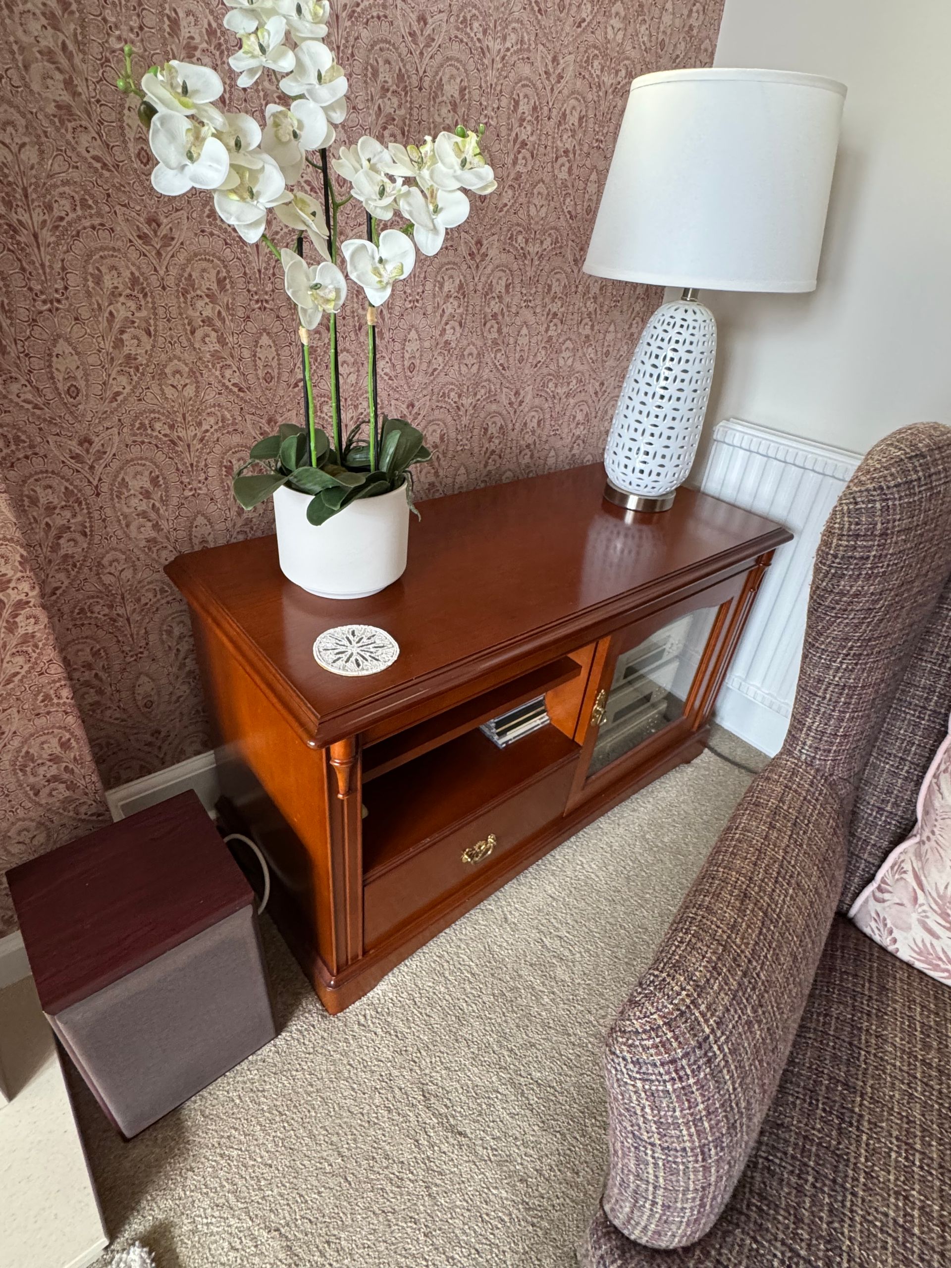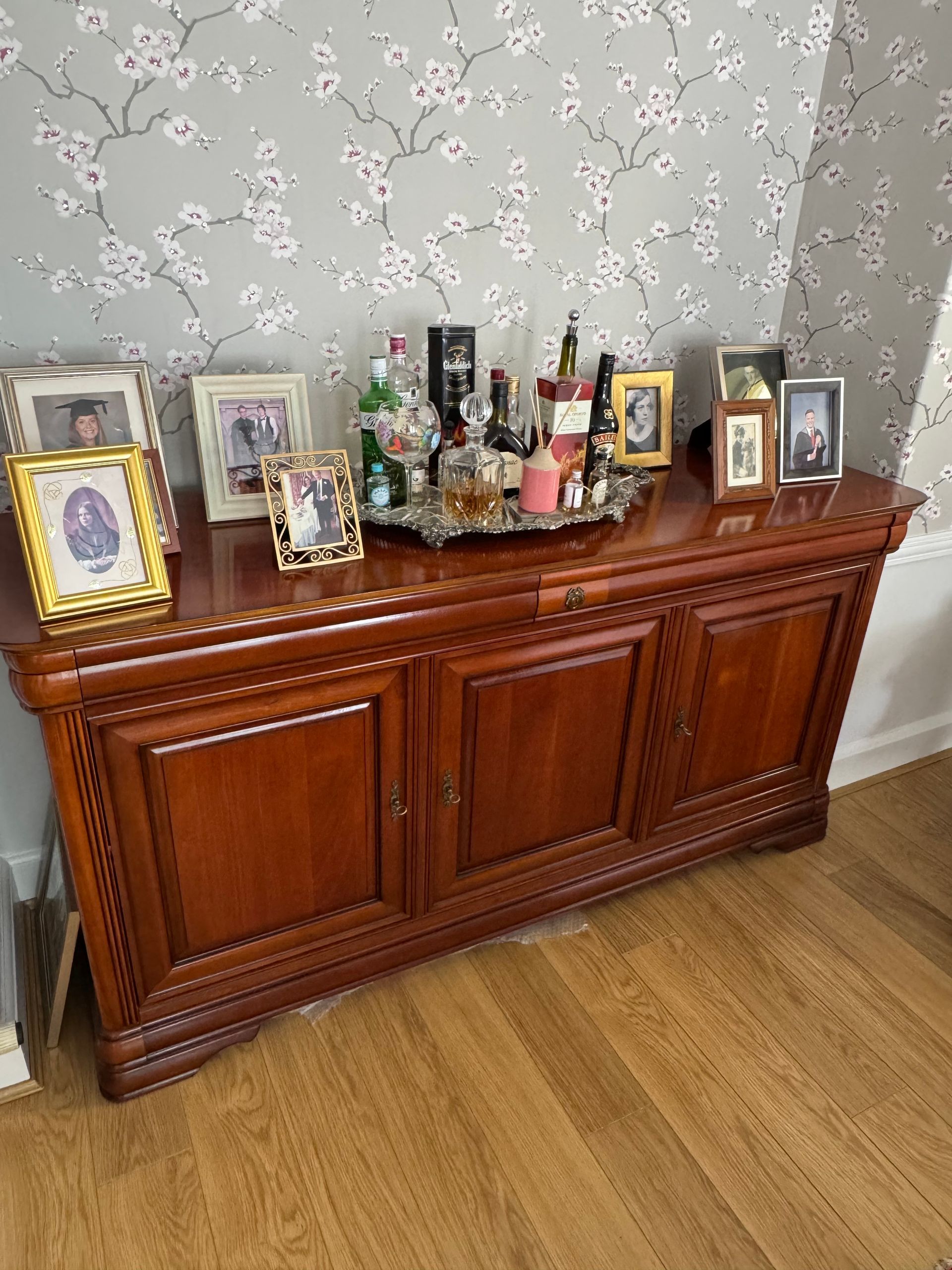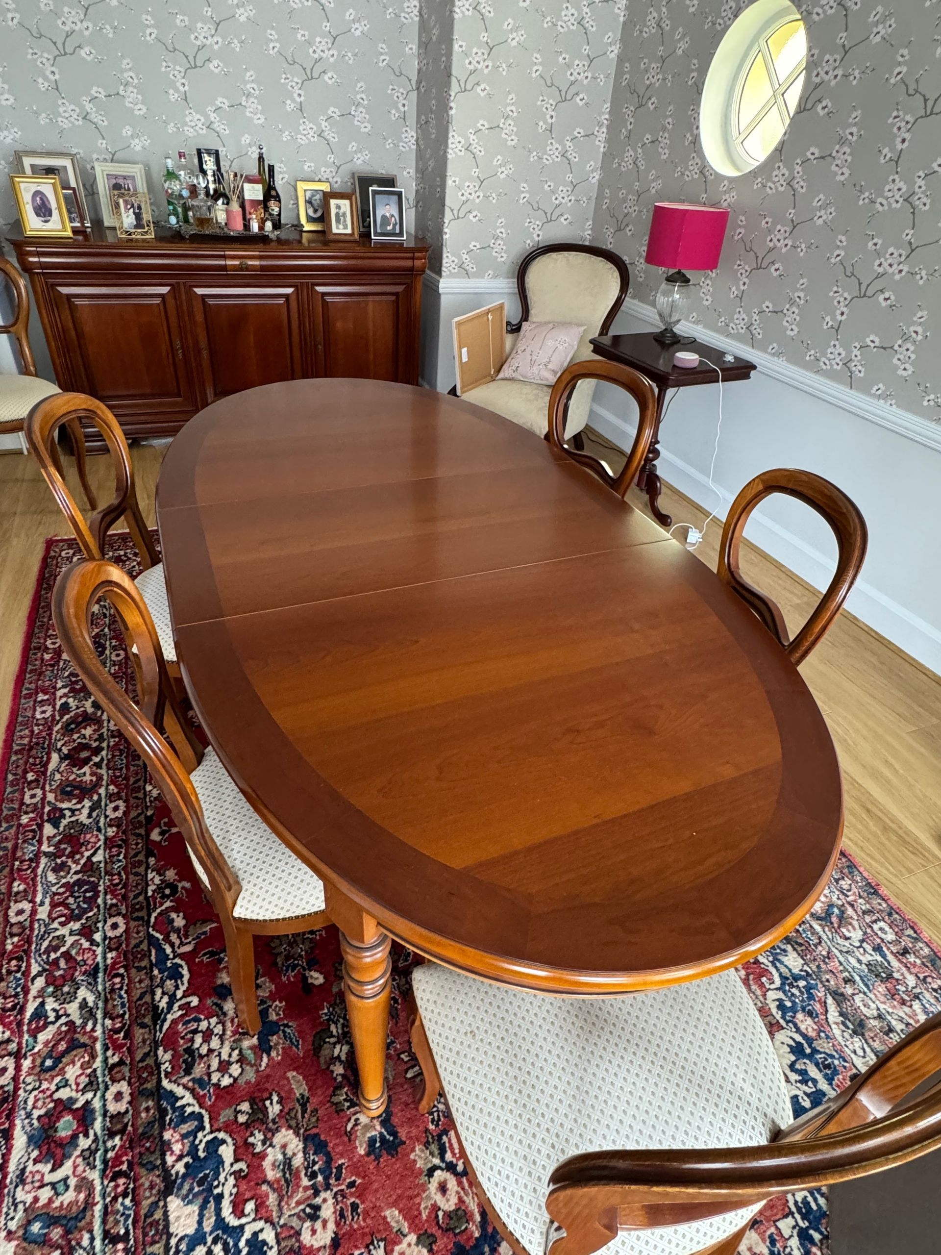 Side cabinet, matching table and 6 chairs.