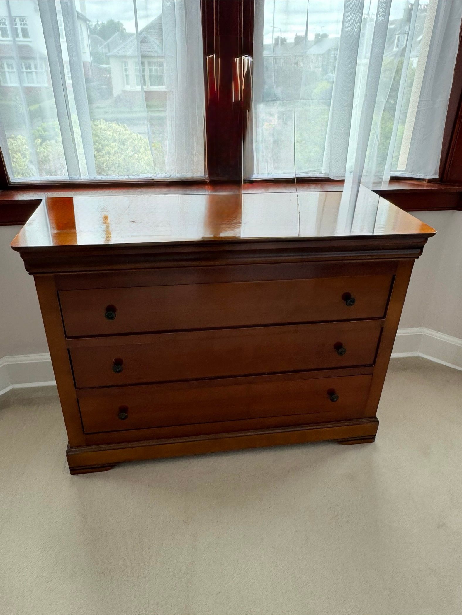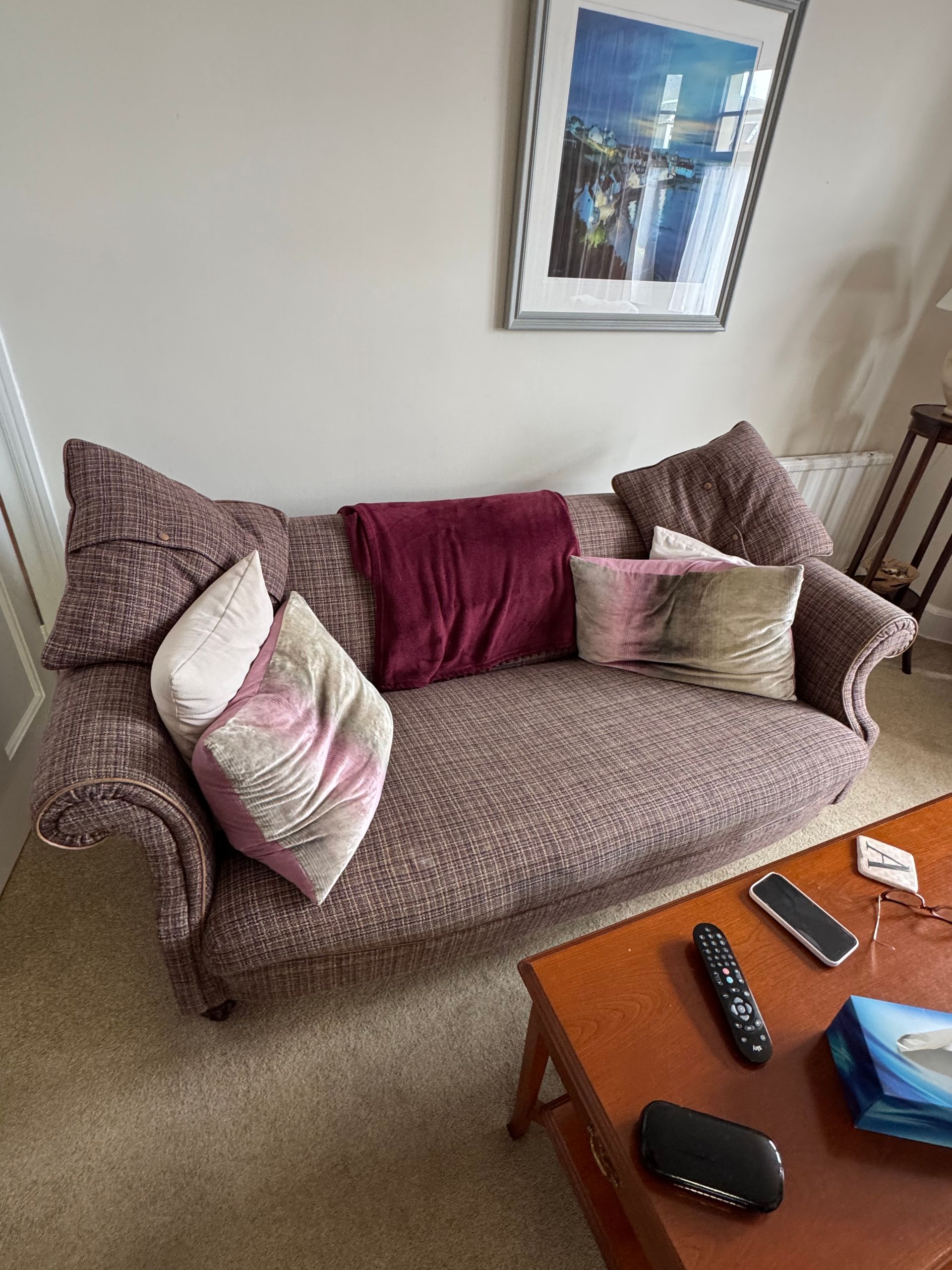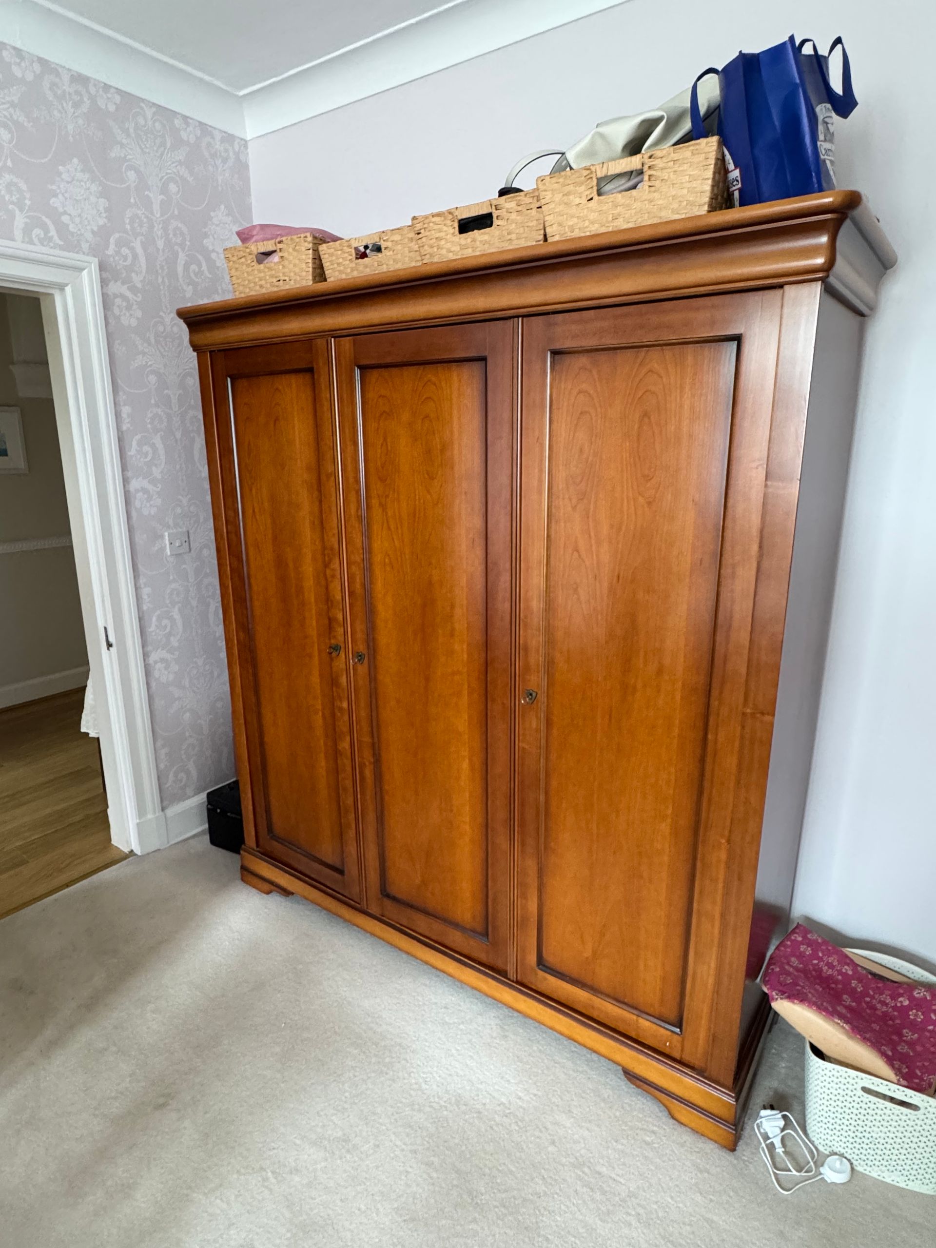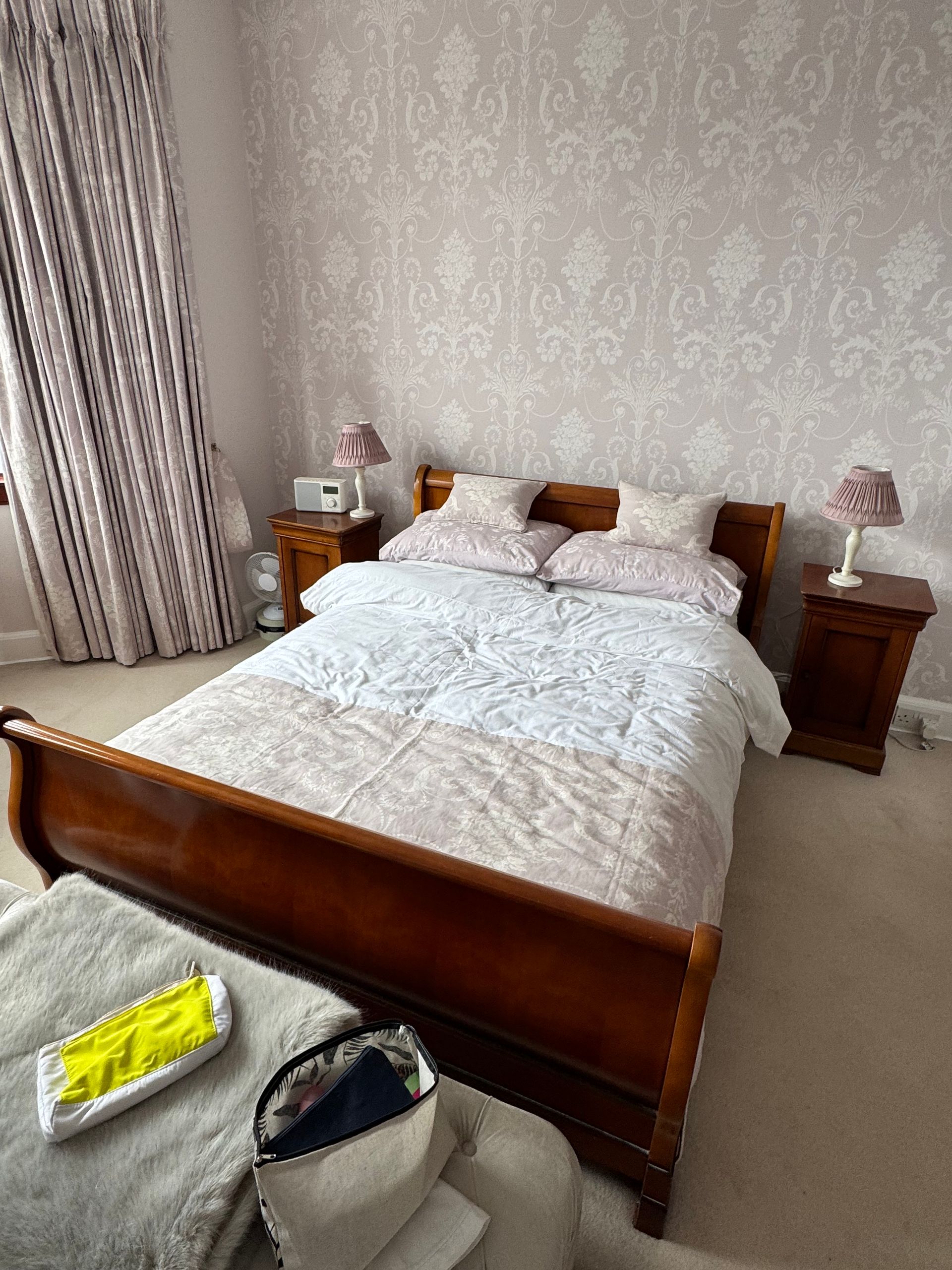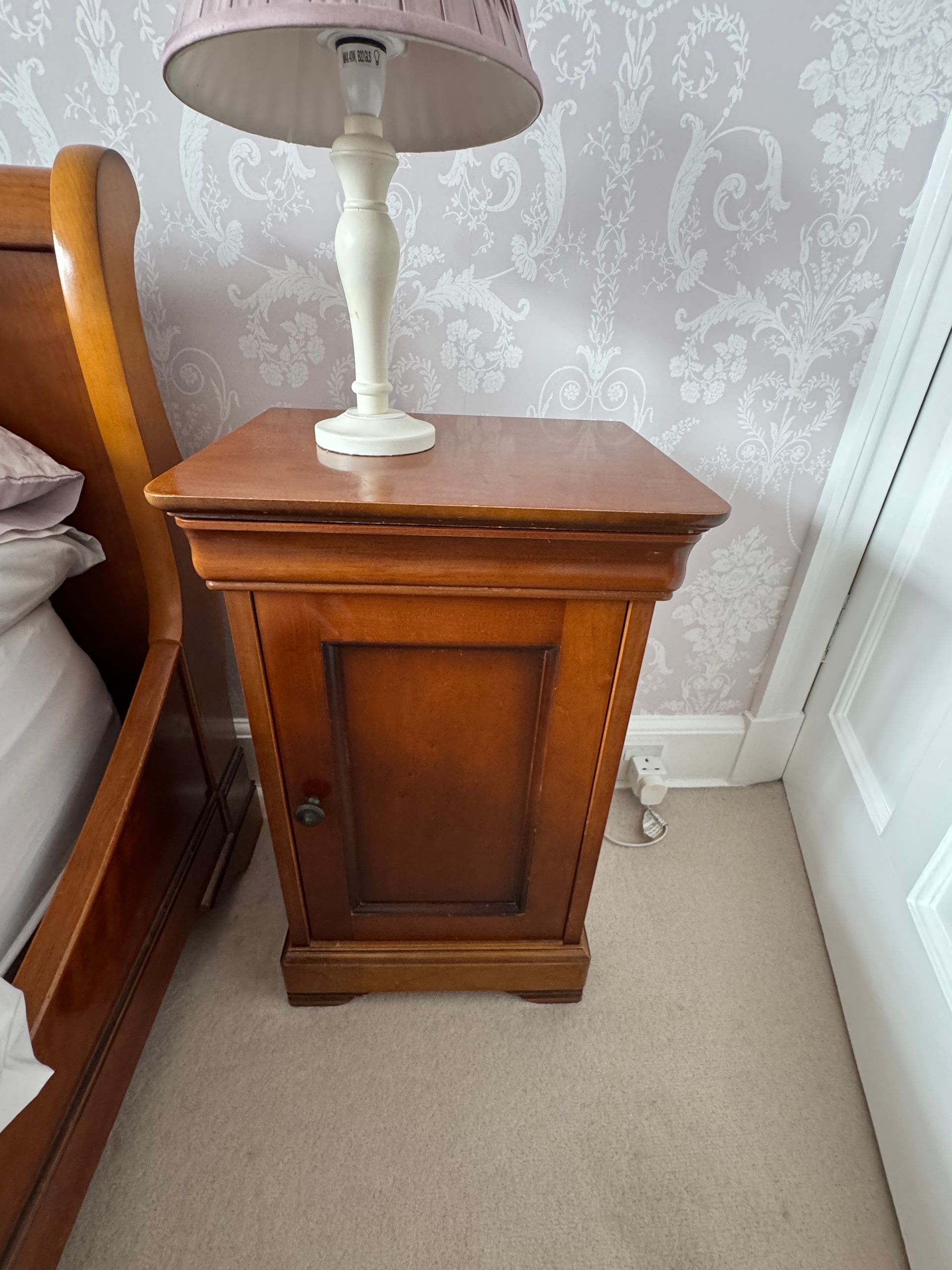 Matching wardrobe, sleigh bed, 2 bedsides & drawers.