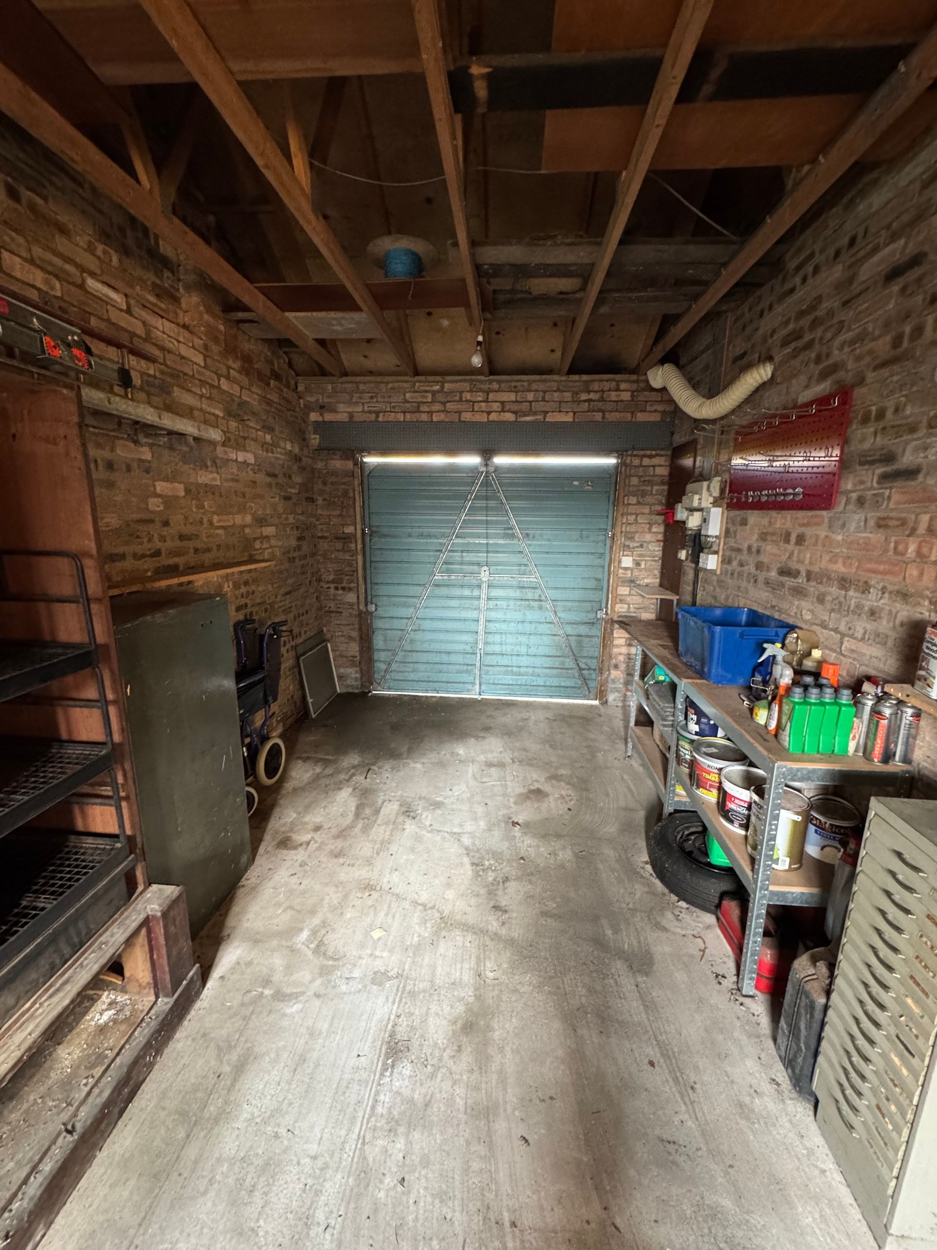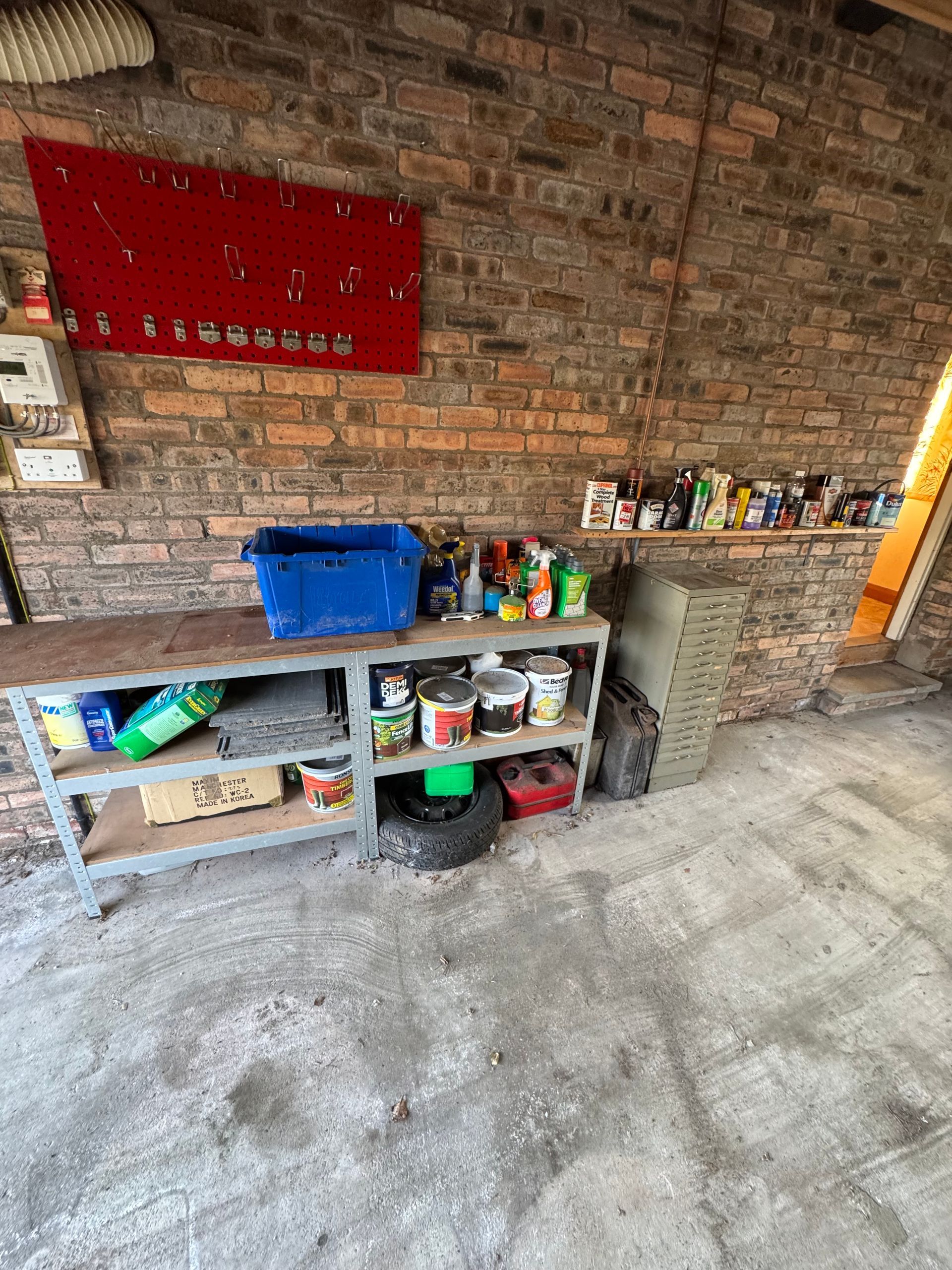 Paint, liquids and chemicals left in situ, as per T&C's. Car wheel and work benches also left in situ.